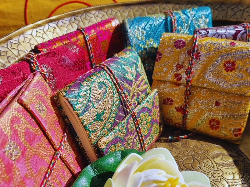 Dresses, kimonos, skirts and more - all made from recycled saree silk. Plus patchwork bags made from recycled embroidery pieces that make the perfect boho handbag to take on your travels.