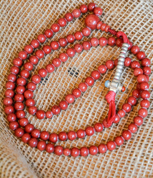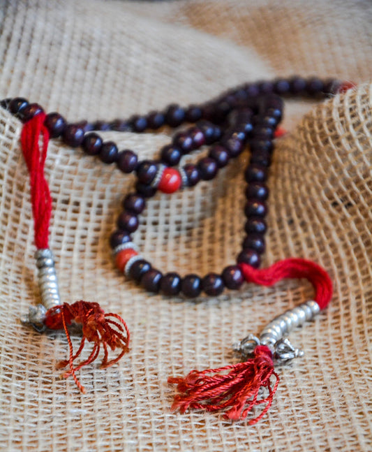 Rosewood Mala Prayer Beads - With Dorje Counter And Coral