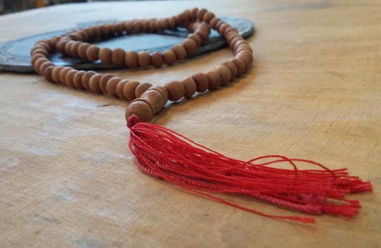 Sandalwood Mala Beads - Wooden Necklace With Tassel
