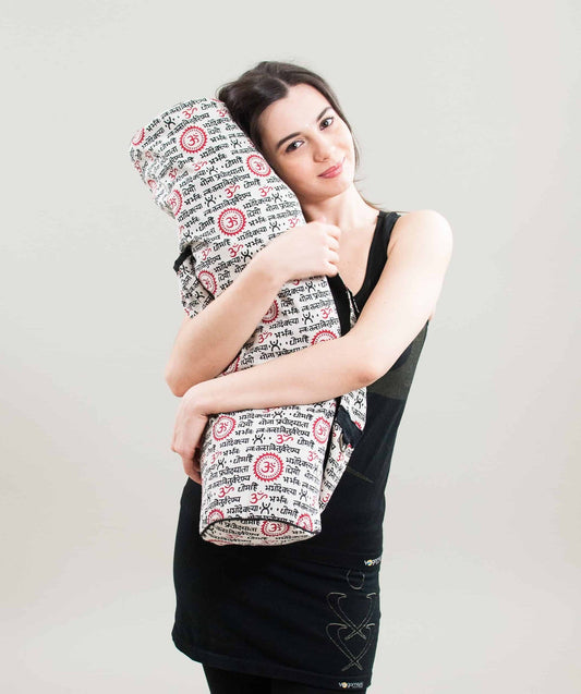 Om Yoga Mat Bag - Gayatri Mantra Print, Water Resistant, Pockets - Saffron