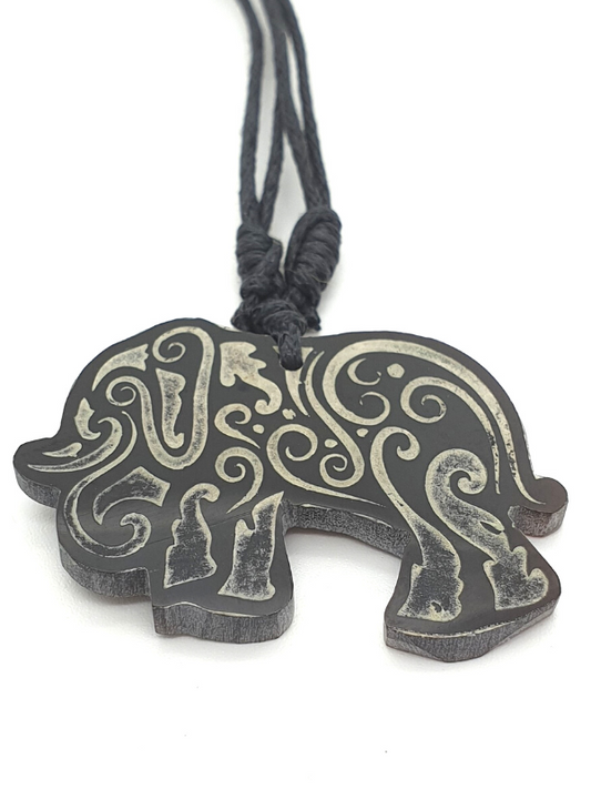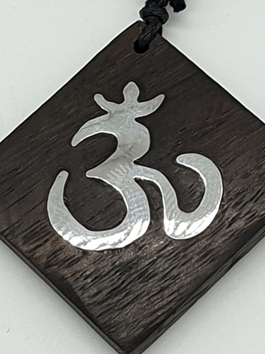 Wooden Om Necklace With Silver Inlay - Adjustable Length