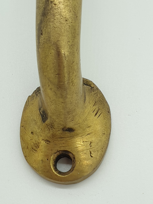Buddha door handle in brass. Get that heavy, ornate temple door feel at home. Topped with a Buddha head that elongates into the handle. The Buddha has closed eyes and a serene, calming expression. The handle piece is smooth and sturdy. Brass also has anti bacterial properties, so is a great alternative to wood and ceramic. Each end has drilled holes for you to affix the handle to the door easily. Simply screw or nail into the door securely. They are cast brass and have plenty of weight to them, so please attach securely and safely. These can be added to internal or external doors and are also suitable for heavy cupboards.