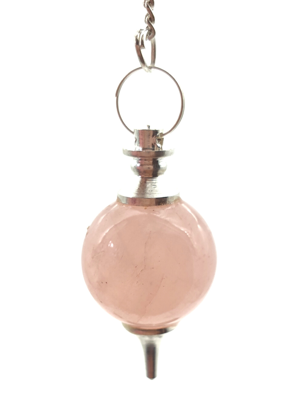 A crystal pendulum in a smooth orb shape. The pendulum hangs on a long chain and is finished with a smooth metal point. The chain and settings are silver plated. Each pendulum has a gemstone orb at its center. Underneath this is a smooth point that indicates the pendulums direction. Use to make decisions using 'dowsing' techniques, or use for healing. You could also take the pendulum off the chain and wear it as a pretty necklace! How to use pendulums for dowsing.