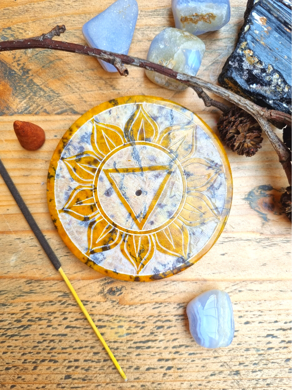 Hand Carved Stone Solar Plexus Chakra Incense Holder - Manipura - Confidence