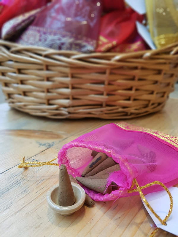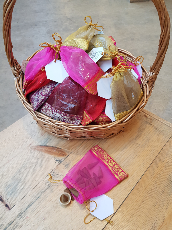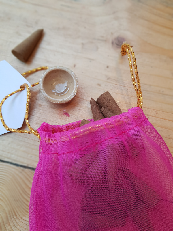 - Gift set of natural incense cones in an organza bag